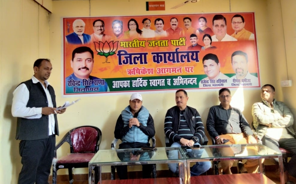 देव भूमि जे के न्यूज ऋषिकेश,25-11-23-भारतीय जनता पार्टी ऋषिकेश मंडल की जिला कार्यालय में बैठक हुई ।जिसमें विकसित भारत संकल्प यात्रा , बूथ सशक्तिकरण अभियान एवं मन की बात की कार्यक्रम की योजना बैठक हुई। मंडल अध्यक्ष सुमित पँवार ने कार्यक्रम की अध्यक्षता करते हुए कहा कि भारतवर्ष के यशस्वी प्रधानमंत्री माननीय नरेंद्र मोदी जी के सपनों के भारत को एक नई ऊंचाइयां निरंतर मिल रही है और हमारा उद्देश्य है कि विकसित भारत संकल्प यात्रा के द्वारा प्रत्येक जरूरतमंद व्यक्ति और समाज के हर तबके को समाज की मुख्य धारा में लाने का कार्य किया जाएगा। सभी प्रकार के भेदभाव को मिटाकर एक सशक्त राष्ट्र की नींव रखी जाएगी। भाजपा का संकल्प है भारतवर्ष को जल्द से जल्द विकसित देशों की श्रेणी में लाकर फिर से विश्व गुरु का दर्जा दिलाया जाए । भारतवर्ष विकसित राष्ट्र की ओर अग्रसर है जिस दिशा में भाजपा का प्रत्येक कार्यकर्ता निरंतर अपना सहयोग दे रहा है।