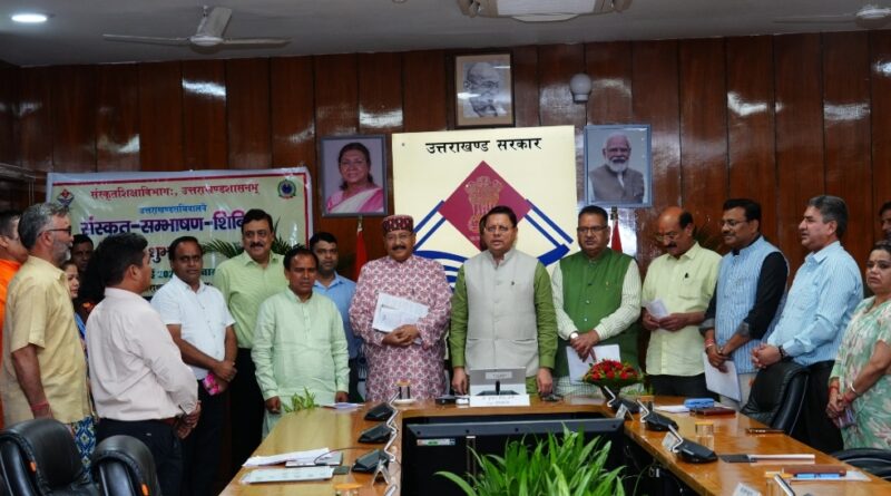 राज्य की द्वितीय राजभाषा संस्कृत के संरक्षण-संवर्धन एवं संस्कृत को जनभाषा बनाने के उद्देश्य से उत्तराखंड सचिवालय परिसर में ‘संस्कृत संभाषण शिविर’ का आयोजन किया जा रहा है। जिसका शुभारम्भ बुधवार को कैबिनेट के बाद मुख्यमंत्री पुष्कर सिंह धामी के द्वारा सभी कैबिनेट मंत्रियों एवं मुख्य सचिव की उपस्थिति में किया गया।