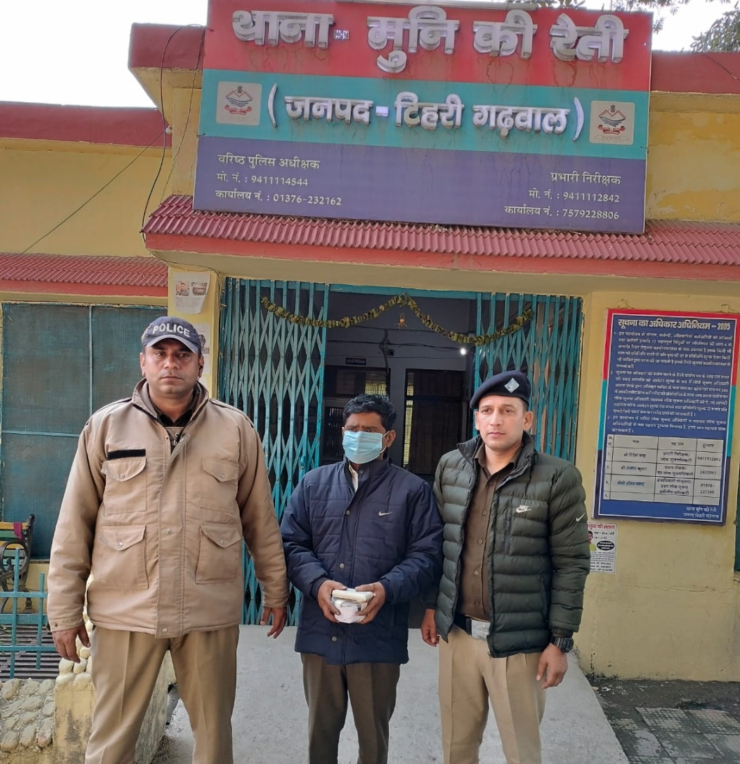 देव भूमि जे के न्यूज,मुनिकीरेती दिनांक 12-12-2023,जनपद में वरिष्ठ पुलिस अधीक्षक द्वारा मादक द्रव्यों एवं मादक पदार्थो की तस्करी/बिक्री की रोकथाम व मादक द्रव्यों एवं मादक पदार्थो की तस्करी एवं बिक्री में लिप्त अपराधियों की गिरफ्तारी हेतु चलाये जा रहे अभियान के अन्तर्गत अपर पुलिस अधीक्षक टिहरी , क्षेत्राधिकारी नरेन्द्रनगर के दिशा निर्देशन में प्रभारी निरीक्षक मुनिकीरेती के नेतृत्व में थाना मुनिकीरेती व सीआईयू की सयुक्त टीम का गठन किया गया । दिनांक 11-12-2023 को गठित टीम द्वारा सुरागरसी पतारसी करते हुए अभि0 शमशाद पुत्र सब्बीर निवासी- विधोलिया थाना सी0बी0गंज जिला बरेली उत्तर प्रदेश उम्र 45 वर्ष को खारास्रोत बाईपास पुल से गिरफ्तार किया गया। अभि0 शमशाद के कब्जे से कुल 70.72 ग्राम स्मैक, एक इलैक्ट्रानिक तराजू, 1600/-रूपये नगद बरामद हुये। अभि0 शमशाद उपरोक्त के विरूद्व धारा 8/21 एनडीपीएस एक्ट का अभियोग पंजीकृत किया गया है। अभि0 को मा0 न्यायालय में पेश किया जा रहा है।