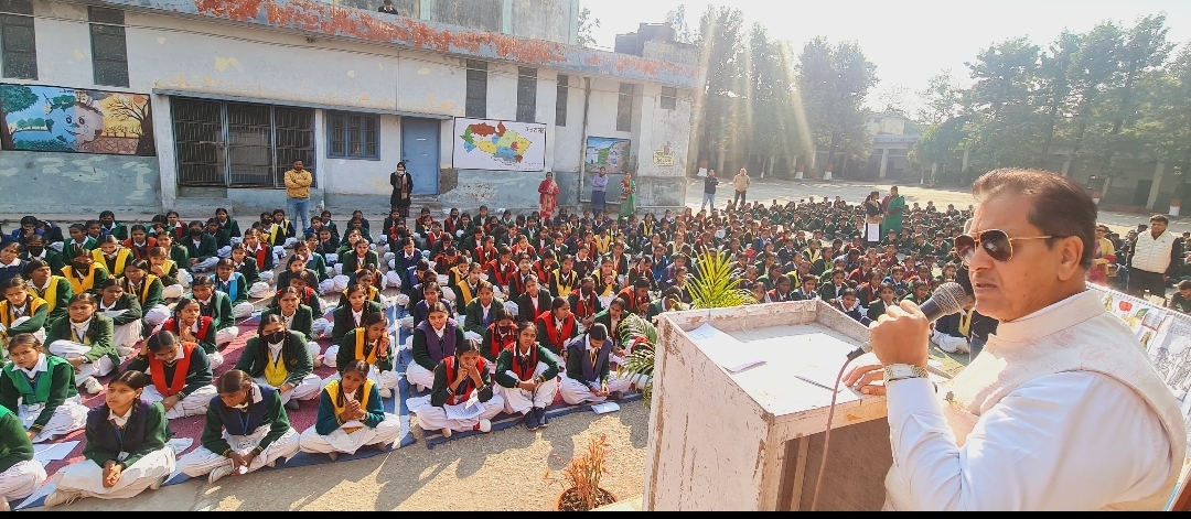 देव भूमि जे के न्यूज,ऋषिकेश 23 दिसम्बर 2023 -गीता जयंती के अवसर पर क्षेत्रीय विधायक व मंत्री डॉ प्रेमचंद अग्रवाल ने श्री भरत मंदिर इंटर कॉलेज में गीता के तीन श्लोक वाचन कराया। इस दौरान गीता की एक पुस्तक हर घर रखने का आवाहन किया। इस दौरान 1800 स्कूली बच्चों ने गीता के श्लोक का वाचन किया। साथ ही बच्चों द्वारा गीता जयंती पर बनाई गए पोस्टर का भी मंत्री डॉ अग्रवाल ने अवलोकन किया।।