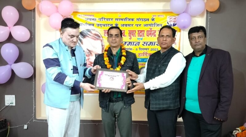 यह सम्मान अपना परिवार संस्था की ओर से राष्ट्रीय अध्यक्ष पुरुषोत्तम भट्ट, संरक्षक अनिल कुकरेती, प्रभारी गोपाल भटनागर एवं संस्था के पदाधिकारियों द्वारा प्रदान किया गया।
