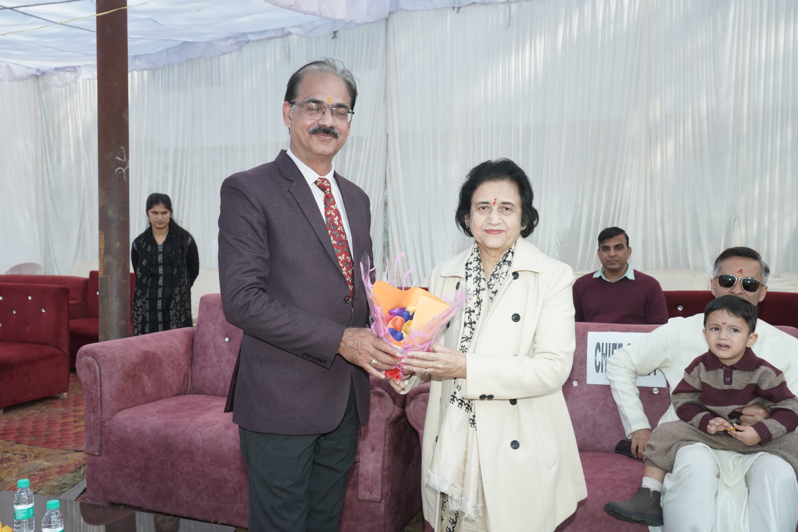 कार्यक्रम की शोभा बढ़ाने हेतु मुख्य अतिथि के रूप में डॉ. मीनू सिंह, निदेशक, एम्स ऋषिकेश, पधारीं। विद्यालय अध्यक्ष महंत श्री वत्सल प्रपन्नाचार्य, विद्यालय प्रबंधक श्री वरुण शर्मा व विद्यालय प्रधानाचार्य श्री के एल दीक्षित ने उनका भव्य स्वागत पुष्पगुच्छ द्वारा किया।