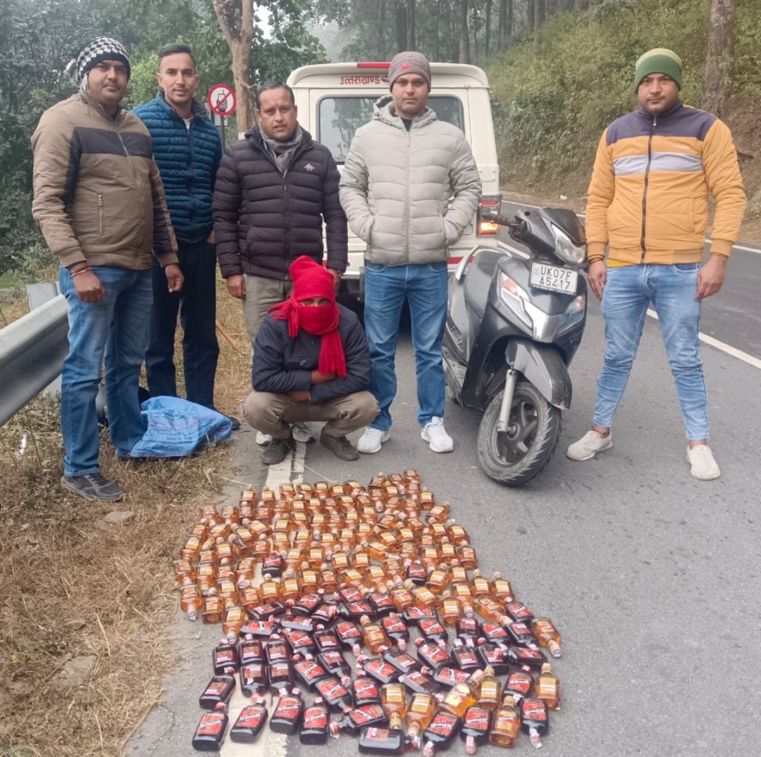अवैध शराब बिक्री की रोकथाम हेतु आबकारी विभाग जनपदीय प्रवर्तन देहरादून एवं ऋषिकेश टीम द्वारा आबकारी निरीक्षक प्रेरणा बिष्ट के निर्देशन में आज दिनांक 20.12.2025 को एक दुपहिया वाहन स्कूटी संख्या Uk 07 fA 5417.से अवैध शराब परिवहन करते पाव वाला सोडा सरोली के पास अभियुक्त कुलदीप पुत्र अमर सिंह निवासी राजपुर रोड जाखन थाना राजपुर जिला देहरादून को 48 पव्वे मैकडॉवेल’स नंबर वन व्हिस्की व 48 ,पव्वे मैकडॉवेल’नंबर वन रम कुल 96 पव्वे अग्रेंजी शराब के साथ गिरफ्तार किया गया है अभियुक्त के विरुद्ध धारा 60/72 आबकारी अधिनियम के अंतर्गत मुकदमा पंजीकृत किया गया।