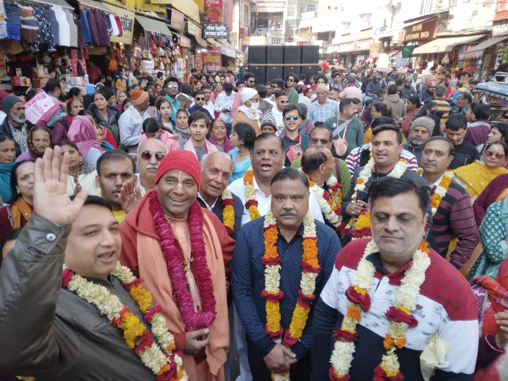 देव भूमि जे के न्यूज,24/12/2023-हरिद्वार 11वीं श्री जगन्नाथ यात्रा बड़े ही हषोॅलास से निकाली गई जय रथ यात्रा परम पूज्य गोलोक वासी श्री भक्ति योग महाराज जी ने 2011 से आरम्भ करी थी उसके बाद से निरन्तर रथ यात्रा निकाली जा रही है इस रथ यात्रा से पूर्व दो बार हरिद्वार में हरी नाम संकीर्तन किया गया और आज इसका शुभारंभ मधुबन आश्रम ऋषिकेश के अध्यक्ष श्री परमानंद दास जी महाराज और स्थानीय निवासियों ने रथ के आगे झाड़ू लगाकर संयुक्त रूप से किया यात्रा को सफल बनाने में अनेक संस्थाओं व्यापारी प्रतिष्ठानओं मीडिया पुलिस प्रशासन का विशेष रूप से सहयोग रहा जगह-जगह रथ यात्रा का पुष्प वर्षा व जलपान से स्वागत किया गया रथ यात्रा का समापन देवपुरा चौक में हुआ और उसके बाद भारत सेवा आश्रम संघ में विशाल भंडारे का आयोजन किया गया आज की रथ यात्रा में मुख्य रूप से हरिद्वार के पूर्व मेयर मनोज गर्ग जी शहर कोतवाल श्रीमती भावना कैंथोला कैलाश केशवानी , संजय मोदी विनय सिंघल ,जी अमित नाथ जी रविकांत , अनिल सिंघल आशीष बंसल दिनेश कुकरेजा जी गौरव अरोड़ा जॉनी अरोड़ा जी महेश पंजवानी जी गिरीश सहगल जी बिश्नोई दुग्ध भंडार पंजाब दुग्ध भंडार ओम साइ ट्रैवल्स वैभव इंटरप्राइजेज मित्तल मशीनरी बालाजी आयरन स्टोर पंकज , गणेश ज्वेलर्स, पूनम हैंडलूम अरोड़ा वेजिटेबल्स रवि धीगरा व हर्ष कौशल जगन्नाथ रथ यात्रा सेवा समिति हरिद्वार शामिल हुए।