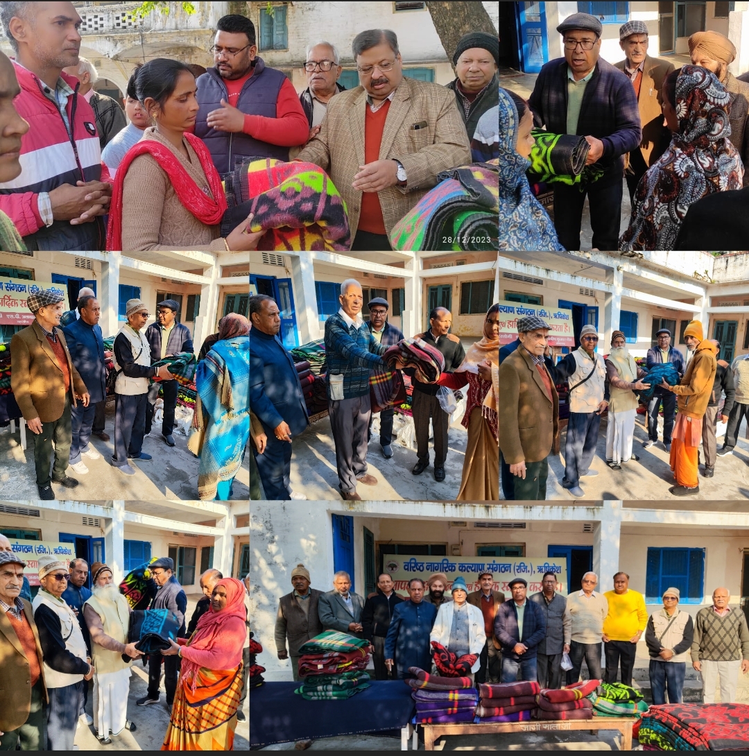 कंपकपाती सर्दी से बचाव के लिए वरिष्ठ नागरिक कल्याण संगठन द्वारा निर्धन एवम जरूरतमंद लोगों के लिए कम्बल वितरण की व्यवस्था की गई है। जीवनी माई धर्मशाला हरिद्वार रोड स्थित संगठन कार्यालय से लगभग 250 लोगों को कम्बल वितरित किए गए। संगठन के अध्यक्ष प्रमोद कुमार जैन एवम् महासचिव एस पी अग्रवाल ने बताया कि नगर में संगठन द्वारा हमेशा ही जरुरतमंद लोगों के लिए अनेक कल्याणकारी योजनाएं चलाई जा रही है ताकि अधिक से अधिक लोगों को लाभ मिल सके।