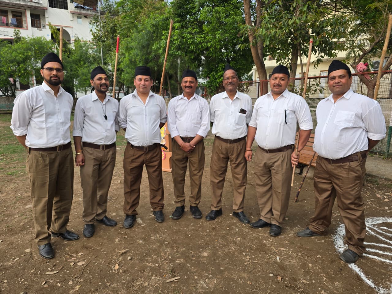 पूर्ण गणवेश में स्वयंसेवक पथ संचालन का आयोजन कर नगर भ्रमण कर रहे हैं।