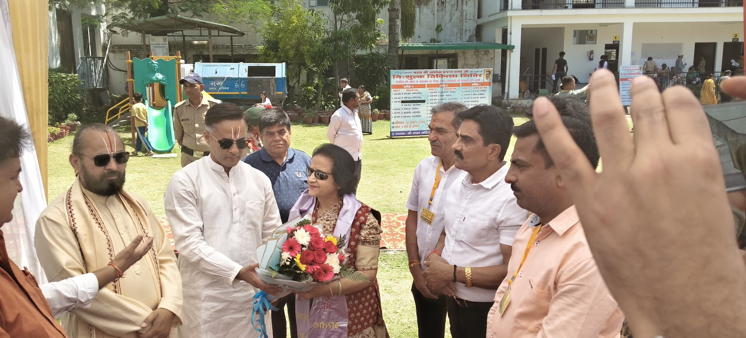 ऋषिकेश- 12 अप्रैल 2026 को श्री भारत मंदिर झंडा चौक में परम पूज्य ब्रह्मलीन महंत अशोक प्रपंन्नाचार्य शर्मा जी के स्मृति में आयोजित निशुल्क चिकित्सा शिविर में 1239 जरूरतमंद व्यक्तियों ने स्वास्थ्य लाभ लिया और कुशल डॉक्टर के द्वारा परामर्श तथा निशुल्क दवाइयां और निशुल्क रक्त जांच तथा अल्ट्रासाउंड और एक-रे आदि करवाया। कार्यक्रम में मुख्य अतिथि स्वास्थ्य मंत्री उत्तराखंड सरकार सुबोध उनियाल और डायरेक्टर AIIMS डॉक्टर मीनू सिंह व महंत वत्सल प्रपनाचार्य जी महाराज के द्वारा स्वास्थ्य शिविर का विधिवत उद्घाटन और शुभारंभ किया गया।
