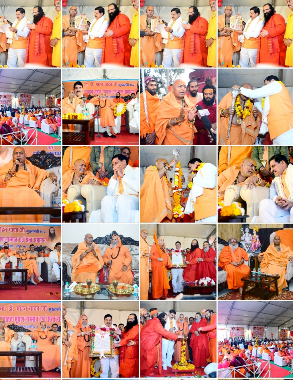 डॉक्टर मोहन यादव ने मध्य प्रदेश को उन्नति पर ले जाने के लिए जो कार्य शुरू किया है वह इसमें निश्चित ही सफल होंगे इसके लिए उन्हें बहुत-बहुत आशीर्वाद और साधुवाद है। इस दौरान महामंडलेश्वर युगपुरुष परमानंद महाराज, आह्वान अखाड़े के आचार्य महामंडलेश्वर अवधूत अरुण गिरी जी महाराज, पूर्व विधायक सुरेश राठौर आदि ने भी संत समागम को संबोधित किया।