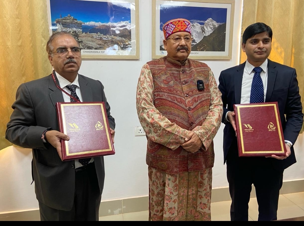देव भूमि जे के न्यूज,देहरादून दिनांक 08 फरवरी 2024, (जि सू का), पर्यटन मंत्री सतपाल महाराज की गरिमामयी उपस्थिति में पर्यटन विभाग एवं आई०आर०सी०टी०सी० के मध्य देश के विभिन्न क्षेत्रों से राज्य के अल्पज्ञात गंतव्यों के लिए एक विशेष पर्यटक ट्रेन मानसखण्ड एक्सप्रेस चलाए जाने के लिए अनुबंध किया गया है। पर्यटन विभाग की ओर से डा० हरीश रेड़तोलिया, अपर मुख्य कार्यकारी अधिकारी, तथा आई०आर०सी०टी०सी० की ओर से समूह महाप्रबन्धक सुनील कुमार, द्वारा अनुबन्ध पर हस्ताक्षर किये।