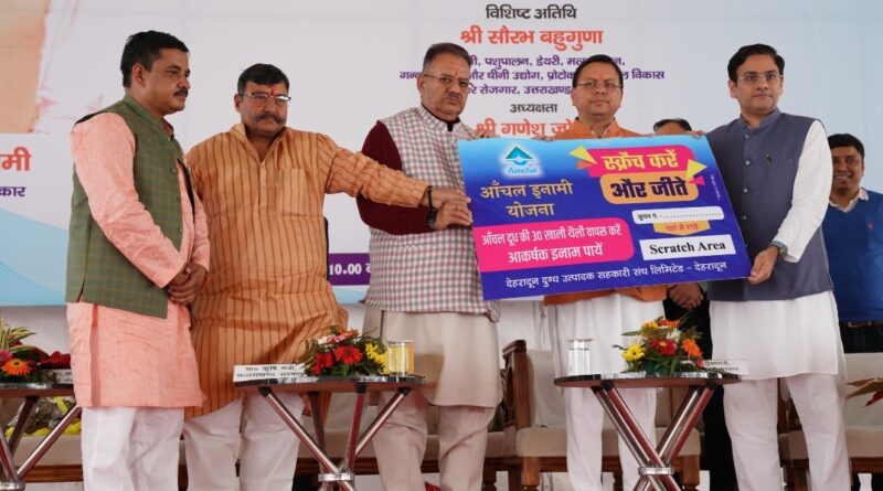 मुख्यमंत्री पुष्कर सिंह धामी ने मंगलवार को सर्वे ऑफ इण्डिया स्टेडियम, हाथीबड़कला, देहरादून में आयोजित कार्यक्रम में प्रतिभाग करते हुए राज्य पशुधन मिशन योजनान्तर्गत लाभार्थियों को चेक वितरण किए। उन्होंने आंचल ब्राण्ड के तहत आंचल शहद एवं आंचल इनामी योजना का भी शुभारम्भ किया।