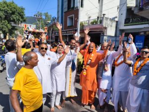 मधुबन आश्रम से शुरू हुई 26वीं रथयात्रा का हरिद्वार व लक्ष्मण झूला मुख्य मार्ग पर विभिन्न संस्थाओं द्वारा पुष्प वर्षा के साथ विधिवत पूजा की गई।