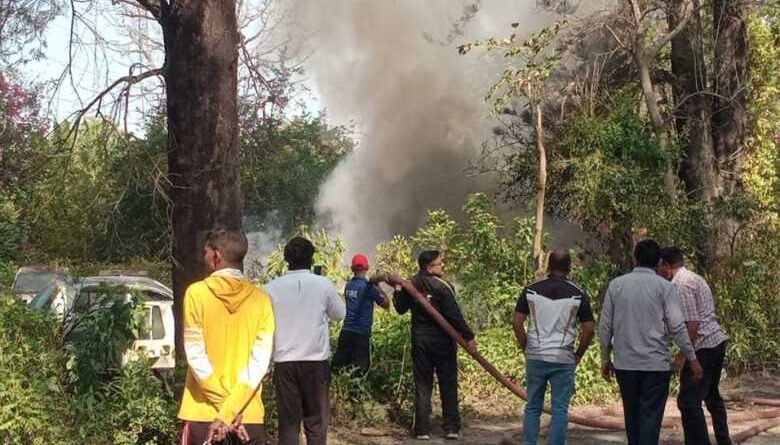 *ऋषिकेश -आइडीपीएल पुलिस चौकी परिसर में खड़ी गाड़ियों में लगी आग- फायर ब्रिगेड मौके पर*