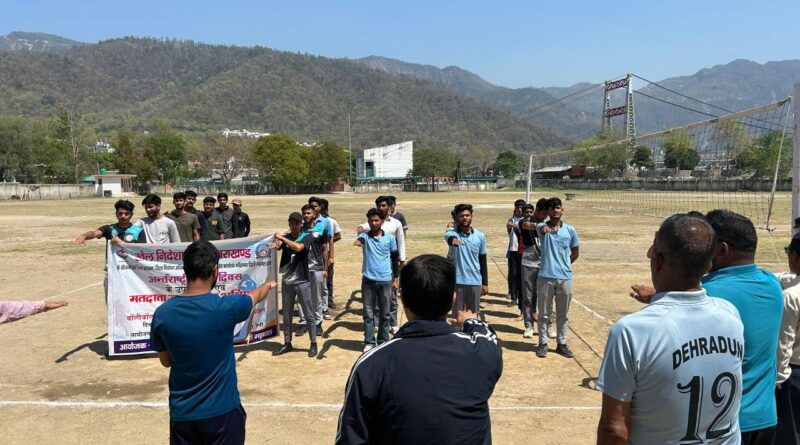देवभूमि जे के न्यूज 06 अप्रैल 2024 को खेल निदेशालय उत्तराखण्ड के सौजन्य एवं जिला प्रशासन के मार्गदर्शन मे जिला खेल कार्यलय नरेन्द्रनगर टिहरी गढ़वाल द्वारा अन्तर्राट्रीय खेल दिवस के उपलक्ष में एवं मतदाता जागरूका अभियान के अंतर्गत एक दिवसिया वाॅलीबाॅल प्रतियोगिता का आयोजन कराया गया जिसमें कुल 6 टीमो ने प्रतिभाग किया, जिसका उद्घाटन टिहरी जिले के खेल प्रभारी दीपक रावत जी एवं खेल प्रेमी पे्रम मोहन कण्डारी ने किया। प्रतियोगिता का फाइनल मुकाबला मुनिकीरेती और ओ0आई0एम0टी0 ऋषिकेश के बीच हुआ, जिसमें ओ0आई0एम0टी0 ने मुनिकीरेती को सीधे 2-0 से हराकर जीत प्राप्त करी। पुरूस्कार वितरण में खेल प्रभारी ओ0आई0एम0टी0 सनिल रावत और प्रेम मोहन कण्डारी जी मौजूद थे।