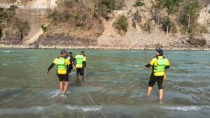 एस डी आर एफ डीप डायवर मातवर सिंह द्वारा नदी में लगातार सर्च किया जा रहा है।