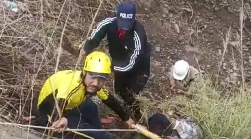 **पहाड़ी पर अटकी स्विफ्ट में फंसे यात्रियों को किया रेस्क्यू**