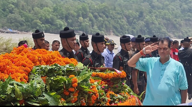 जम्मू के कठुआ में शहीद हुए भानियावाला के जवान विनोद सिंह का अंतिम सस्कार गंगा तट स्थित पूर्णानंद घाट पर राजकीय सम्मान के साथ किया गया। राज्य सरकार की ओर से क्षेत्रीय विधायक व कैबिनेट मंत्री डॉ प्रेमचंद अग्रवाल ने शहीद को अंतिम सलामी देकर पुष्पांजलि अर्पित की। अपने वीर सपूत के बलिदान को याद कर डॉ अग्रवाल भावुक नज़र आए। इस दौरान कैबिनेट मंत्री श्री सुबोध उनियाल ने भी शहीद को श्रद्धा सुमन अर्पित किए।