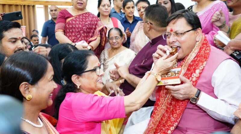 मुख्यमंत्री पुष्कर सिंह धामी ने रक्षाबंधन के अवसर पर शुक्रवार को मुख्यमंत्री आवास में ’मुख्यमंत्री सशक्त बहना उत्सव योजना’ एवं मुख्यमंत्री महिला स्वयं सहायता समूह सशक्तिकरण योजना के अन्तर्गत राज्य स्तरीय कार्यक्रम में प्रतिभाग किया। इस अवसर पर मुख्यमंत्री ने चार जनपदों से आए प्रतिभागियों में से 10 सहायता समूह को रिवॉल्विंग फण्ड के रूप में 25-25 हजार रुपये, 10 समूह को सीआईएफ के रूप में 75-75 हजार रुपये एवं सीसीएल के रूप 1 लाख 50 हजार रुपये की धनराशि के चेक प्रदान कर उन्हें सम्मानित किया। इस अवसर पर प्रदेश के विभिन्न क्षेत्रों से आई महिलाओं ने मुख्यमंत्री को रक्षा सूत्र बांधा तथा उनके दीर्घायु की कामना की।