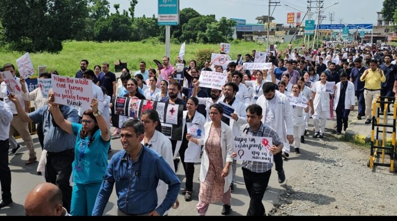 *एचआईएमएस जौलीग्रांट के स्टूडेंट्स व चिकित्सकों ने निकाला मार्च, महिला डॉक्टर को दी श्रद्धांजलि*