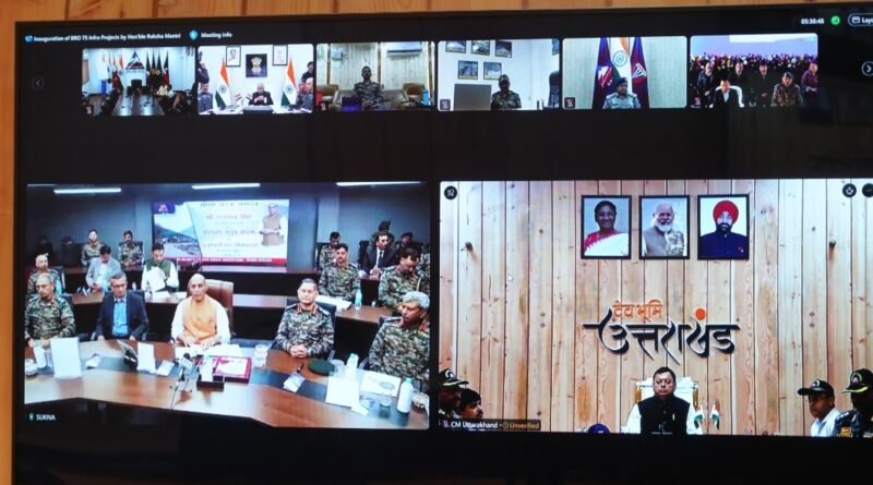 रक्षा मंत्री राजनाथ सिंह ने शनिवार को सीमा सड़क संगठन द्वारा निर्मित 75 प्रमुख बुनियादी ढांचा परियोजनाओं का लोकार्पण कर राष्ट्र को समर्पित किया। इसमें 09 परियोजनाएं उत्तराखंड की शामिल हैं। कार्यक्रम में मुख्यमंत्री श्री पुष्कर सिंह धामी वर्चुअल रूप से उपस्थित थे।