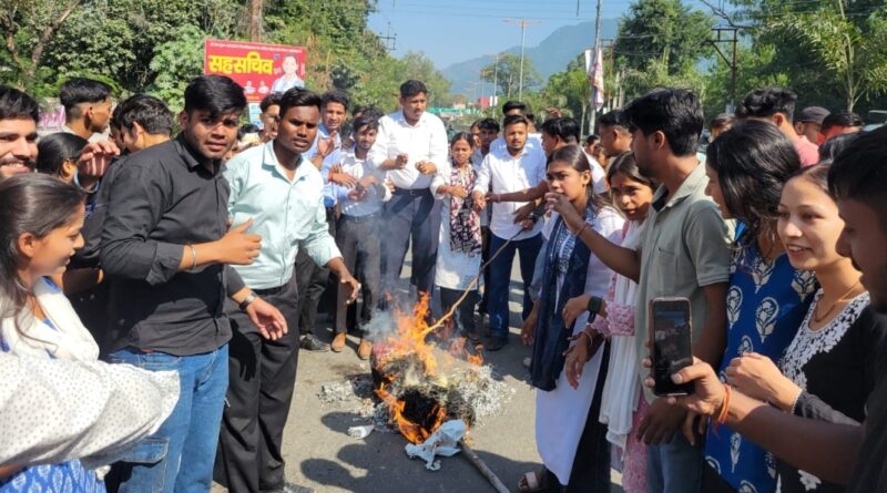 *ऋषिकेश-छात्र संघ चुनाव करावाने को लेकर कुलपति का पुतला दहन कर जताया विरोध*