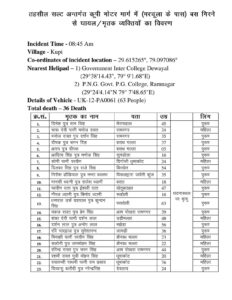 सोमवार को अल्मोड़ा जिले के सल्ट तहसील में मार्चुला के पास कूपी में हुए भीषण बस दुर्घटना में 36 व्यक्तियों की मृत्यु तथा 26 लोग घायल हुए है। इस दुःखद घटना पर दुख व्यक्त करते हुए मुख्यमंत्री पुष्कर सिंह धामी ने मृतकों की आत्मा की शांति एवं शोकाकुल परिवार जनों को इस दुख की घड़ी में दुख सहने की ईश्वर से कामना की। मुख्यमंत्री पुष्कर सिंह धामी ने तत्काल मुआवजे का ऐलान करते हुए इस हादसे में हताहत हुए लोगों के परिजनों को चार-चार लाख रुपये वह घायलों को ₹1 लाख मुआवजे की घोषणा की मुख्यमंत्री ने घायलों के शीघ्र स्वास्य लाभ की भी कामना की है।