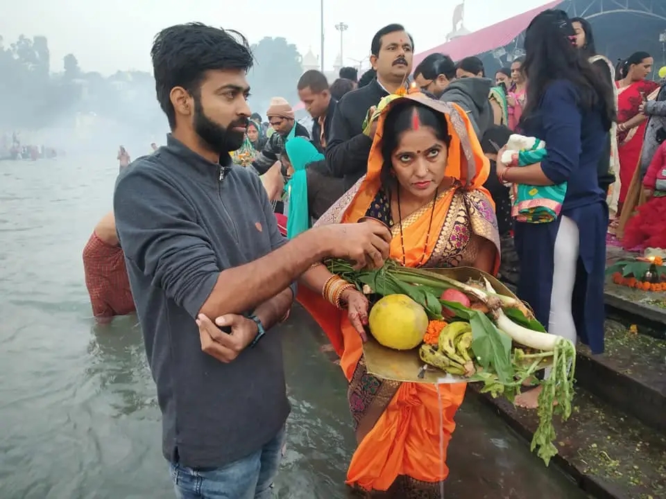 देवी प्रकृति के छठे रूप और भगवान सूर्य की बहन छठी मैया को त्योहार की देवी के रूप में पूजा जाता है। यह दीपावली के छह दिन बाद , हिंदू कैलेंडर विक्रम संवत में कार्तिक (अक्टूबर-नवंबर) के चंद्र महीने के छठे दिन मनाया जाता है । अनुष्ठान चार दिनों तक मनाया जाता है। इनमें पवित्र स्नान, उपवास और पीने के पानी से परहेज करना, पानी में खड़ा होना, और डूबते और उगते सूर्य को प्रसाद (प्रार्थना प्रसाद) और अर्घ्य देना शामिल है। कुछ भक्त नदी तट की ओर जाते समय साष्टांग मार्च भी करते हैं।