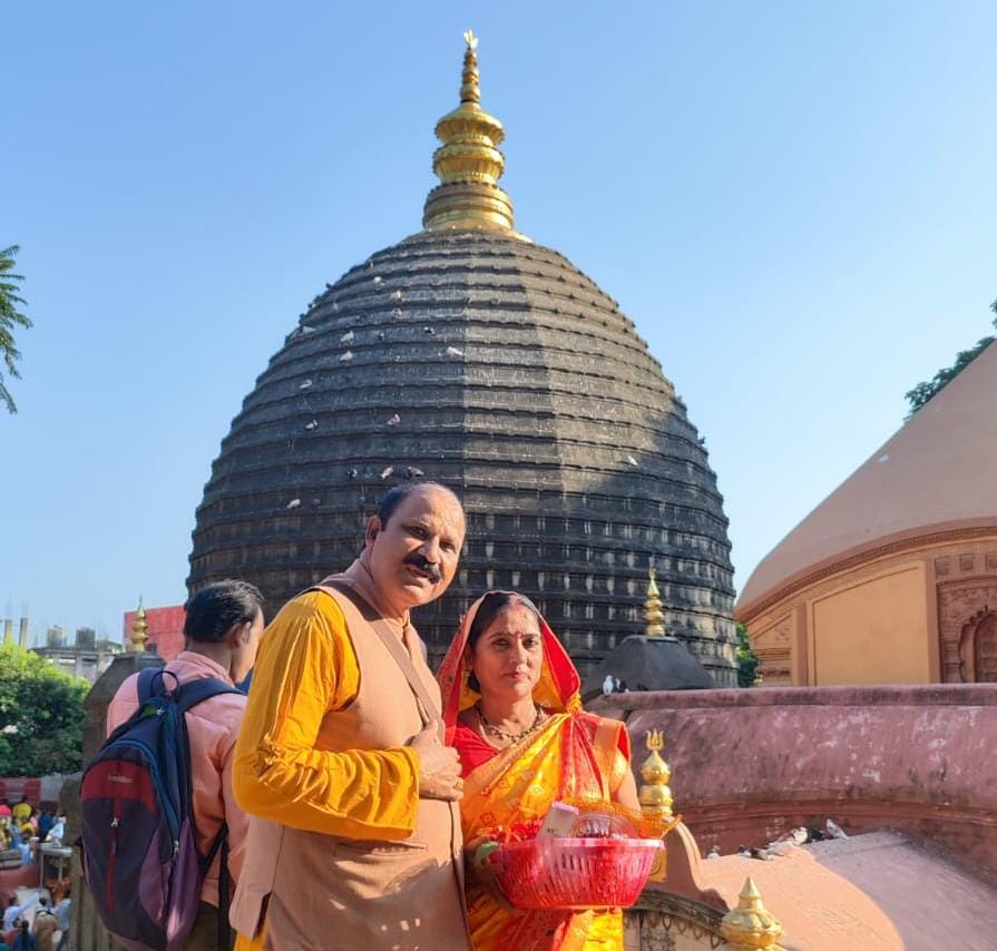 लगभग आधे घंटे में हमने टापू को छोड़ दिया। स्टीमर वाला आने जाने का किराया पहले ही ले चुका था, हम वापस आए और वहां से गुवाहाटी में बने बालाजी मंदिर के दर्शन के लिए निकल पड़े लगभग 1 घंटे की भीड़भाड़ भरे रास्तों से होते हुए मंदिर में पहुंचे वहां तीन मंदिर है पद्मनाभ मंदिर, माता दुर्गा जी की मंदिर और गणेश जी का मंदिर। तीनों मंदिरों में दर्शन कर वापस हम फैंसी बाजार के लिए निकल पड़े जहां रविवार होने की वजह से अधिकांश दुकानें बंद थी परंतु फिर भी लगभग 25% दुकान खुली थी जो दुकान बंद थी उनकी दुकानों के आगे काफी गहमागहमी थी, तरह-तरह के कपड़े फुटपाथ में लगे हुए थे। हम एक बड़ी सी दुकान में गए पत्नी रंजू तिवारी के लिए दो साड़ियां ली जो की आसामी स्टाइल में वहां के लोकल बनावट और एक काजीरंगा शैली में थी और एक असमी कढ़ाई में। खरीदारी करने के बाद वापस होटल आए जहां दोपहर का लंच लेकर कुछ देर आराम किया और फिर मां कामाख्या देवी के दर्शन के लिए आठ लोग हम निकल पड़े हम दोनों का ₹501 का ऑनलाइन दर्शन का टिकट था वहां जाकर कंप्यूटर कक्ष में अपना टिकट निकलवा कर पुजारी जी को फोन किया। हमारे साथ जो गाइड थे वह हमें लाइन में लगाकर चले गए एक हाल में बैठे थे। इस समय हमने एक फोटो स्टेट्स फेसबुक पर डाला ,फेसबुक स्टेटस देखकर एक हमारे ऋषिकेश के दुर्गेश तिवारी जो की हमारे उनसे अतरंग संबंध थे देखकर हमें कॉल किया और बोले आप कहां है? हमने पता बताया वह आए और हम दोनों को विशेष एंट्री से जल्दी ही लाइन में लगवा दिए जहां लगभग आधे घंटे बाद हमारा नंबर आ गया! पुजारी जी को फोन करने के बाद वह तो नहीं आए पर उनका भाई मुन्ना पंडित आए और विधिवत मां कामाख्या देवी का पूजा अर्चना करवा कर गर्भ-गृह से हम बाहर आए ।