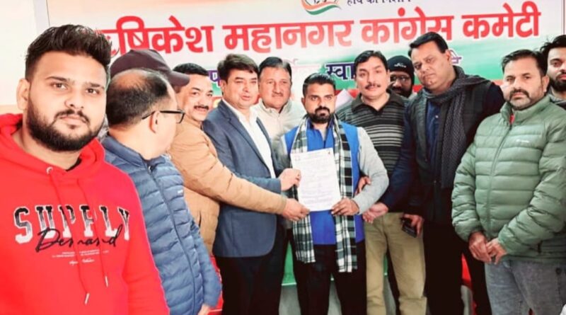 कांग्रेस पार्टी की तरफ से दिनांक 16/12/24 सोमवार को ऋषिकेश नगर निगम चुनाव हेतु मेयर और वार्ड सदस्यों के प्रत्याशियों ने अपनी दावेदारी को लेकर कांग्रेस भवन में अपनी दावेदारी पेश की। इस सम्बंध में नगर निकाय चुनाव संयोजक संजय गुप्ता एवं संगठन महामंत्री ऋषि सिंघल ने बताया कि आज मेयर पद के लिए 7 जिसमें प्रमुख रूप से आवेदन करने वालों में महेंद्र सिंह (पूर्व अधिशाषी अभियंता), दीपक प्रताप जाटव (नगर महामंत्री संगठन) प्रवीण जाटव प्रदेश (सचिव), दिनेश चंद्र मास्टर, सूरत सिंह कोहली(रिटायर्ड वित्त अधिकारी) ऋषभ कुमार, मनोज बर्तवाल आदि ने अपनी दावेदारी पेश की । वहीं पार्षद पद के लिए 58 आवेदन प्राप्त हुए तथा कल दिनांक 17/12/24 मंगलवार को भी रेलवे रोड स्थित कांग्रेस भवन में सुबह 11:30 बजे से दोपहर 2:30 बजे तक आवेदन पत्र लिए जाएंगे, अभी तक लगभग सभी वार्डों से बहुत से आवेदन प्राप्त हुए और अभी कल ये संख्या और भी बढ़ जाएगी।