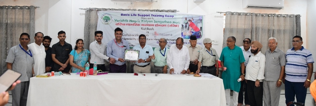 देव भूमि जे के न्यूज, ऋषिकेश-25/09/2024- वरिष्ठ नागरिक कल्याण संगठन द्वारा आयोजित मेदांता हॉस्पिटल गुरुग्राम के सहयोग से एक लाइफ सपोर्ट ट्रेनिंग कैम्प