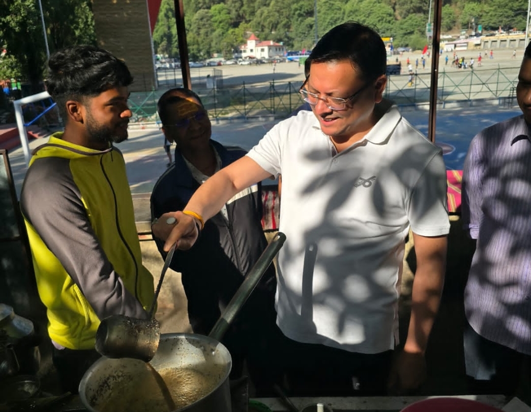 *सुबह की सैर पर निकले धामी ने खुद बनाई अदरक की चाय*