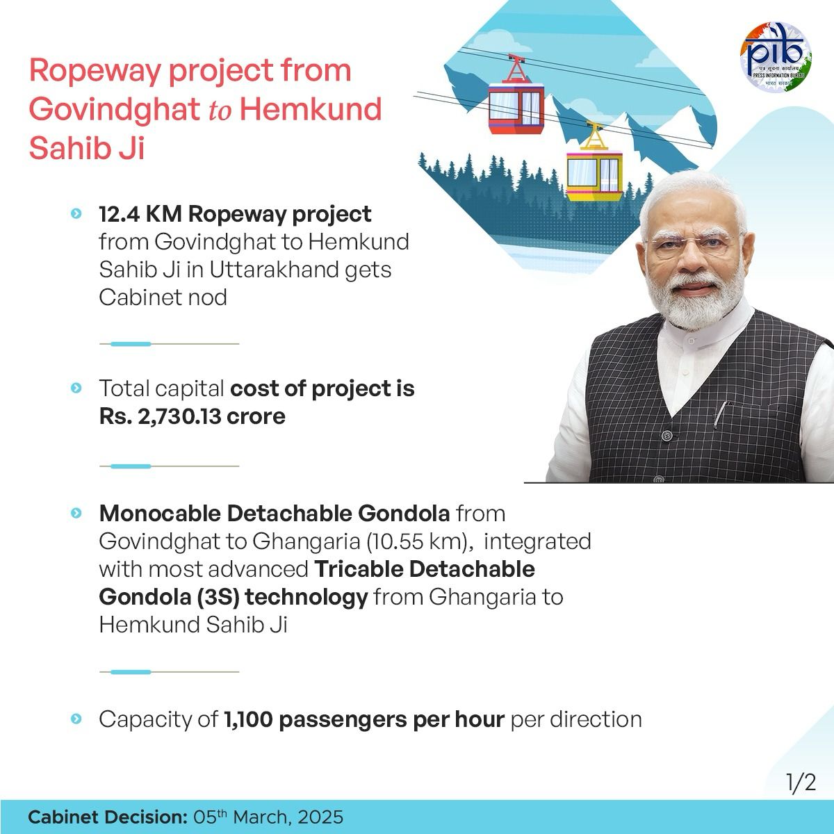 *गोविंदघाट से हेमकुंट साहिब तक 11.4 किलोमीटर लंबी आधुनिक रोपवे के लिए 2730.14 करोड़ रुपये की मिली मंजूरी*