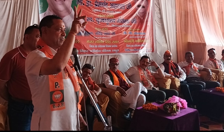 भाजपा शिक्षक प्रकोष्ठ के जिला सहसंयोजक मेजर गोविंद सिंह रावत के नेतृत्व में हुई जनसभा।के